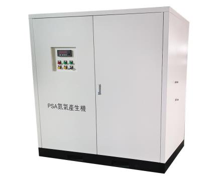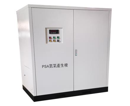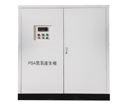 制氮機是按變壓吸附技術設計、制造的氮氣制取設備。制氮機以碳分子篩(CMS)為吸附劑,采用常溫下變壓吸附原理(PSA)分離空氣制取高純度的氮氣。通常使用兩吸附塔并聯,由PLC控制氣動閥自動運行,交替進行加壓吸附和解壓再生,完成氮氧分離,獲得所需高純度的氮氣。