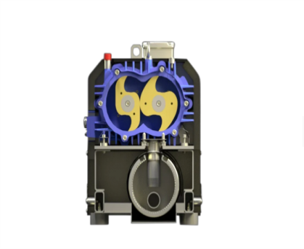 爪式泵由兩個(gè)轉(zhuǎn)子組成。它們?cè)趬嚎s機(jī)殼體中以相反的方向轉(zhuǎn)動(dòng),而不接觸,觀察到非常緊密的間隙。它們通過精密齒輪同步。當(dāng)爪子在吸力連接處和軸向吸氣通道入口處移動(dòng)時(shí),氣體被吸入壓縮室。